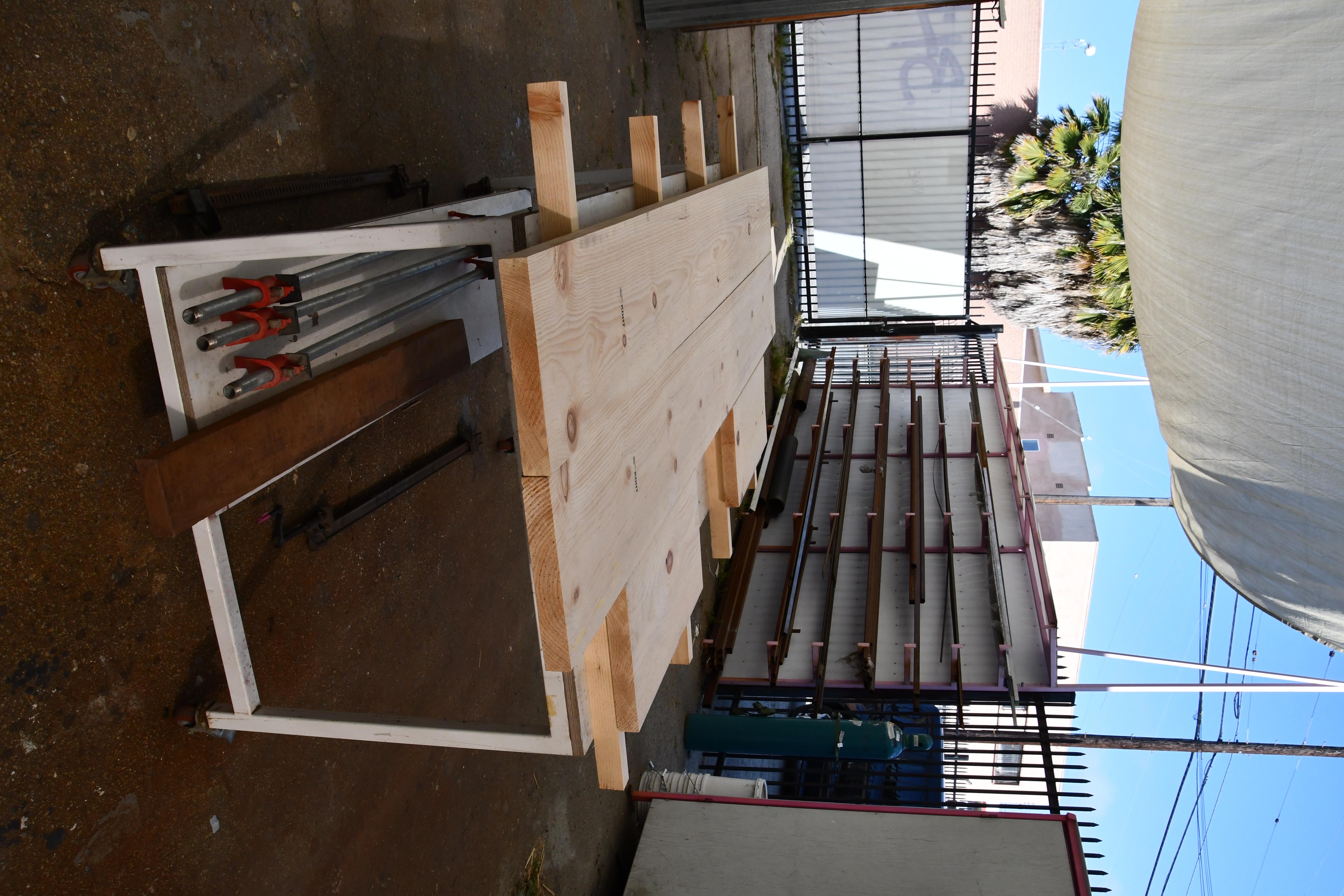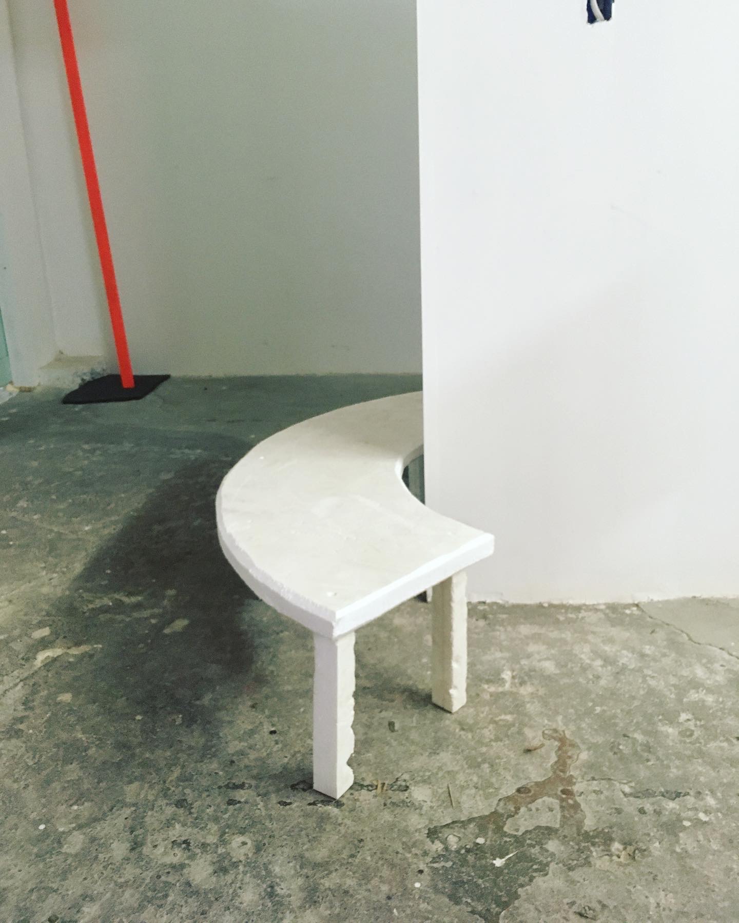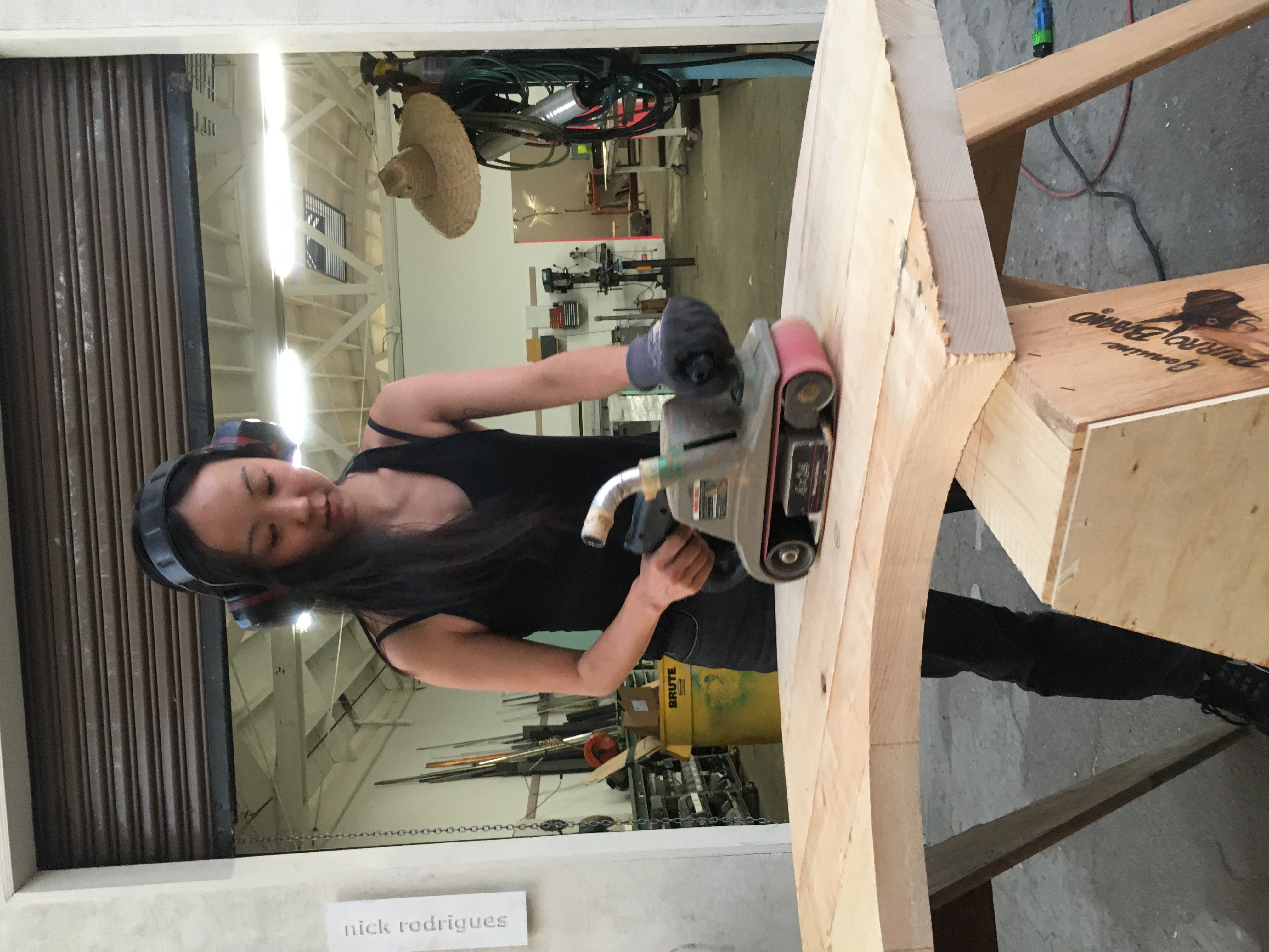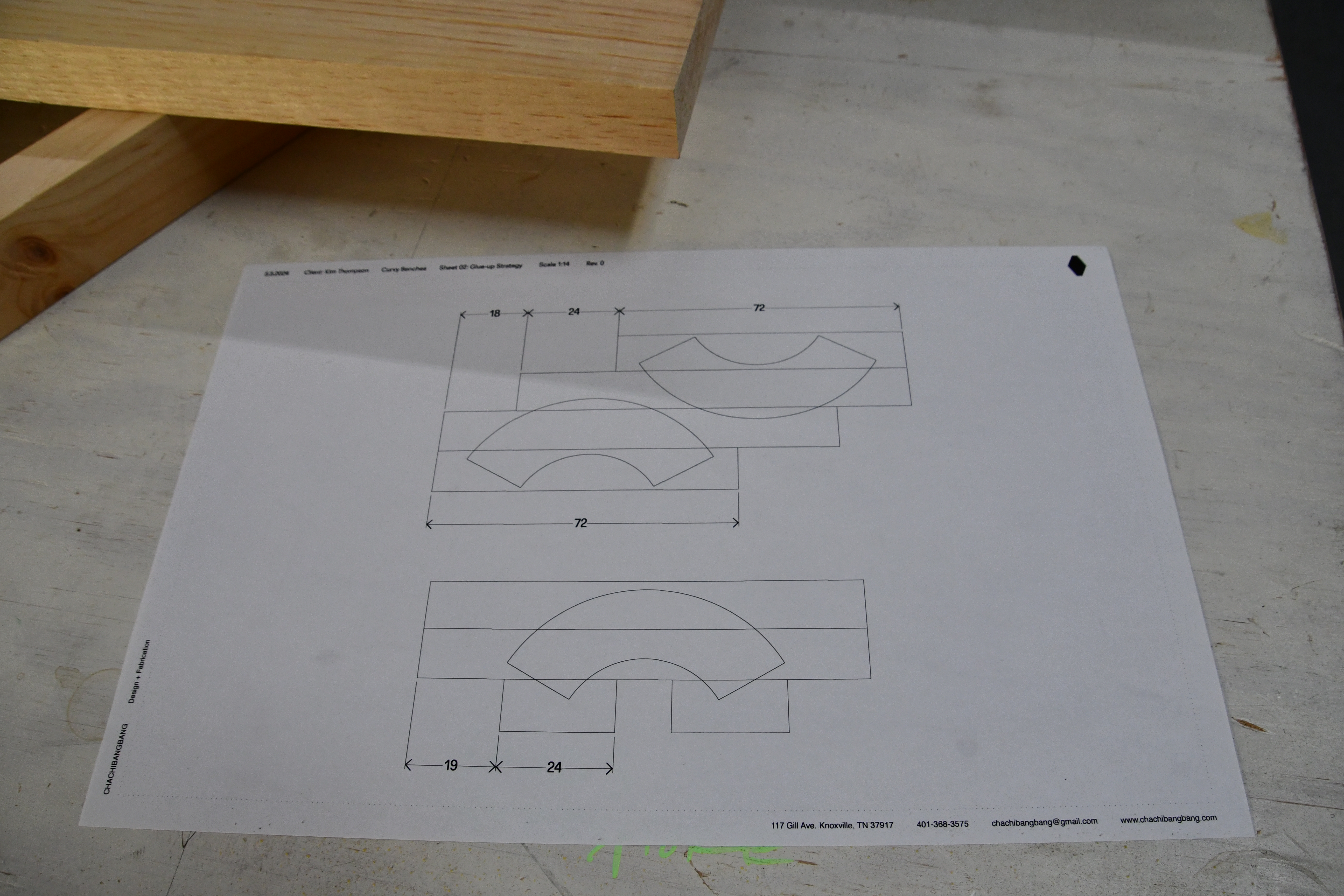 To get the shapes and sizing just right, I carved prototypes out of foam. The first batch was made on a tight budget without any large milling equipment, so the client joined me in the studio and helped with sanding. Lacking a lathe, I found a trick to shape the legs with a router, and used a large Forstner bit to cut the holes. Thanks to documentation of the process, I was able to construct the second batch four years later with refinement, tighter details and less time. Thanks to solid construction and simple design, the benches have held up with constant movement and daily use.