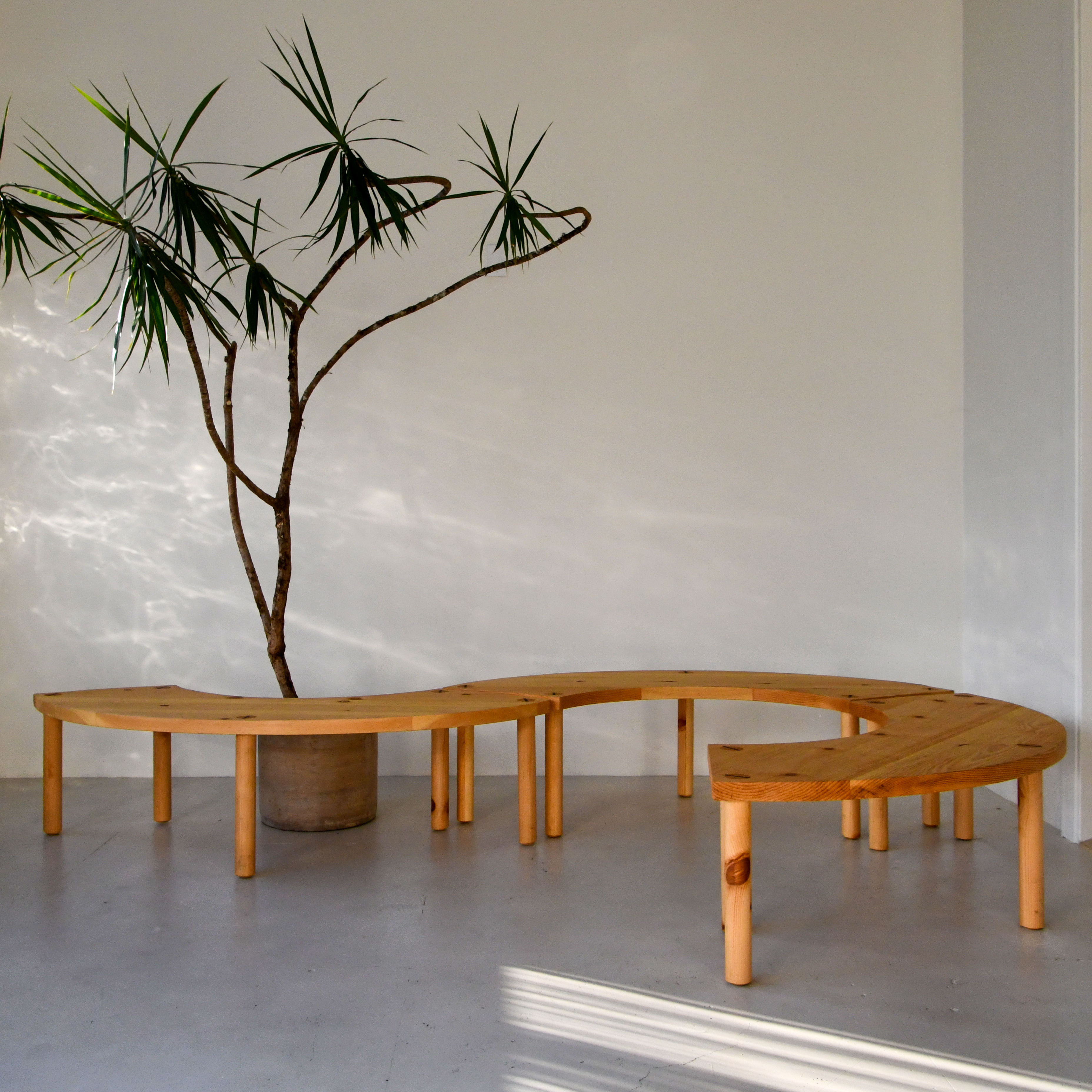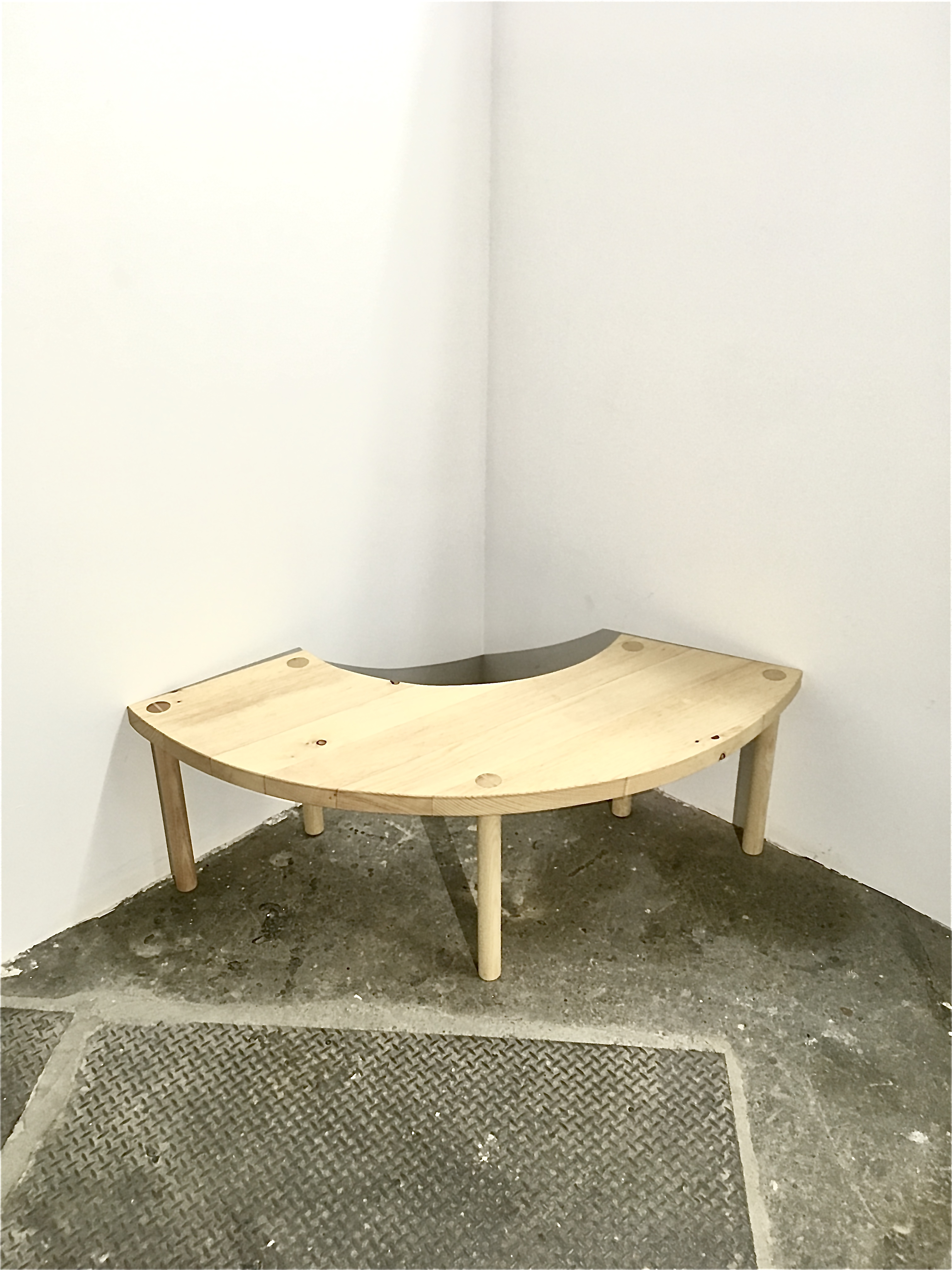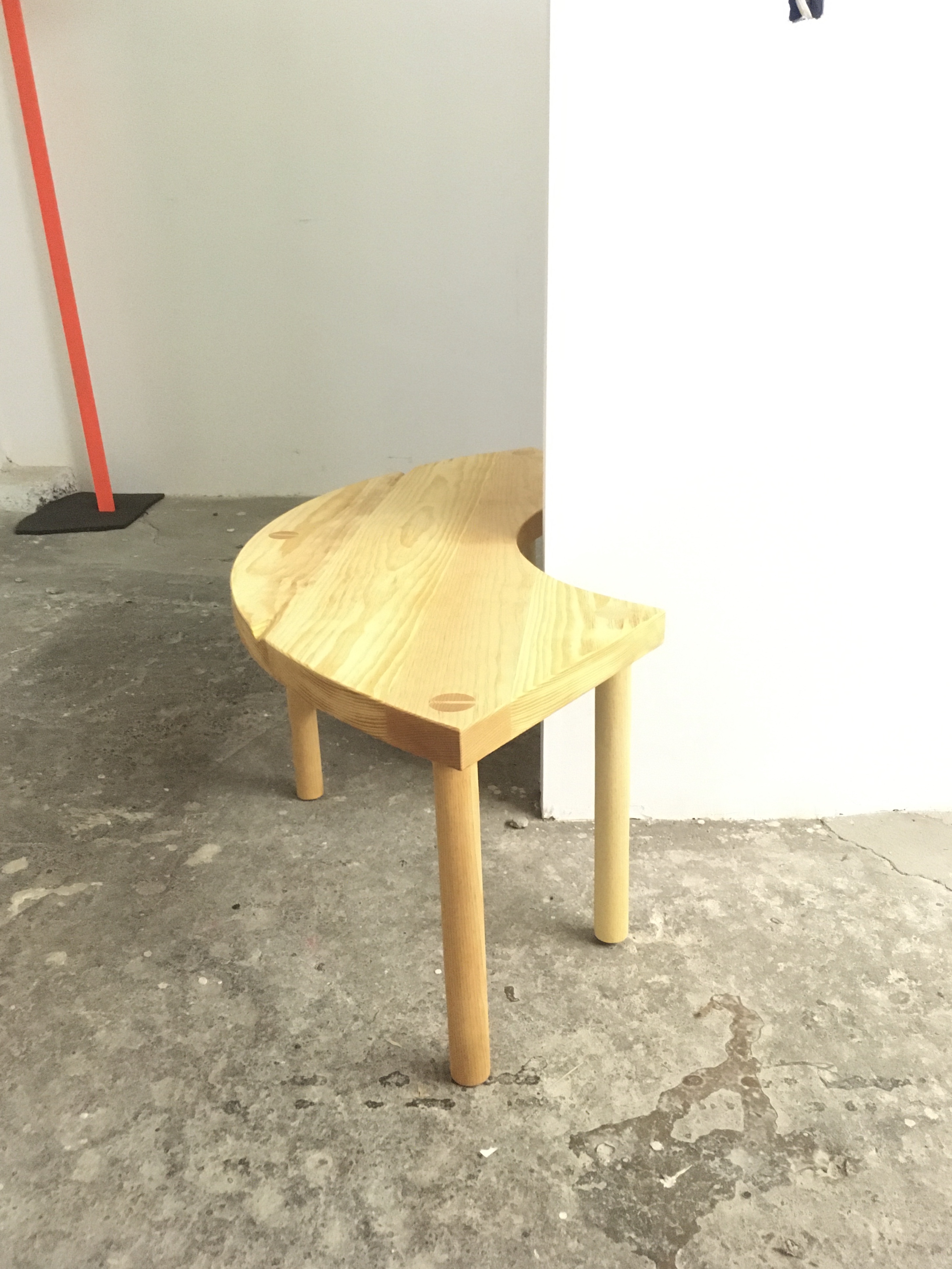 A group of benches commissioned for boutique fitness studio BODY DADA located in the historic Los Angeles neighborhoods of Highland Park and Silverlake. The playful shapes invite interaction, and are surprisingly light and easy to move despite generous sizing. Cut and joined from solid Suparpine, they feature simple legs with oversized tenons and wedges made from Walnut.