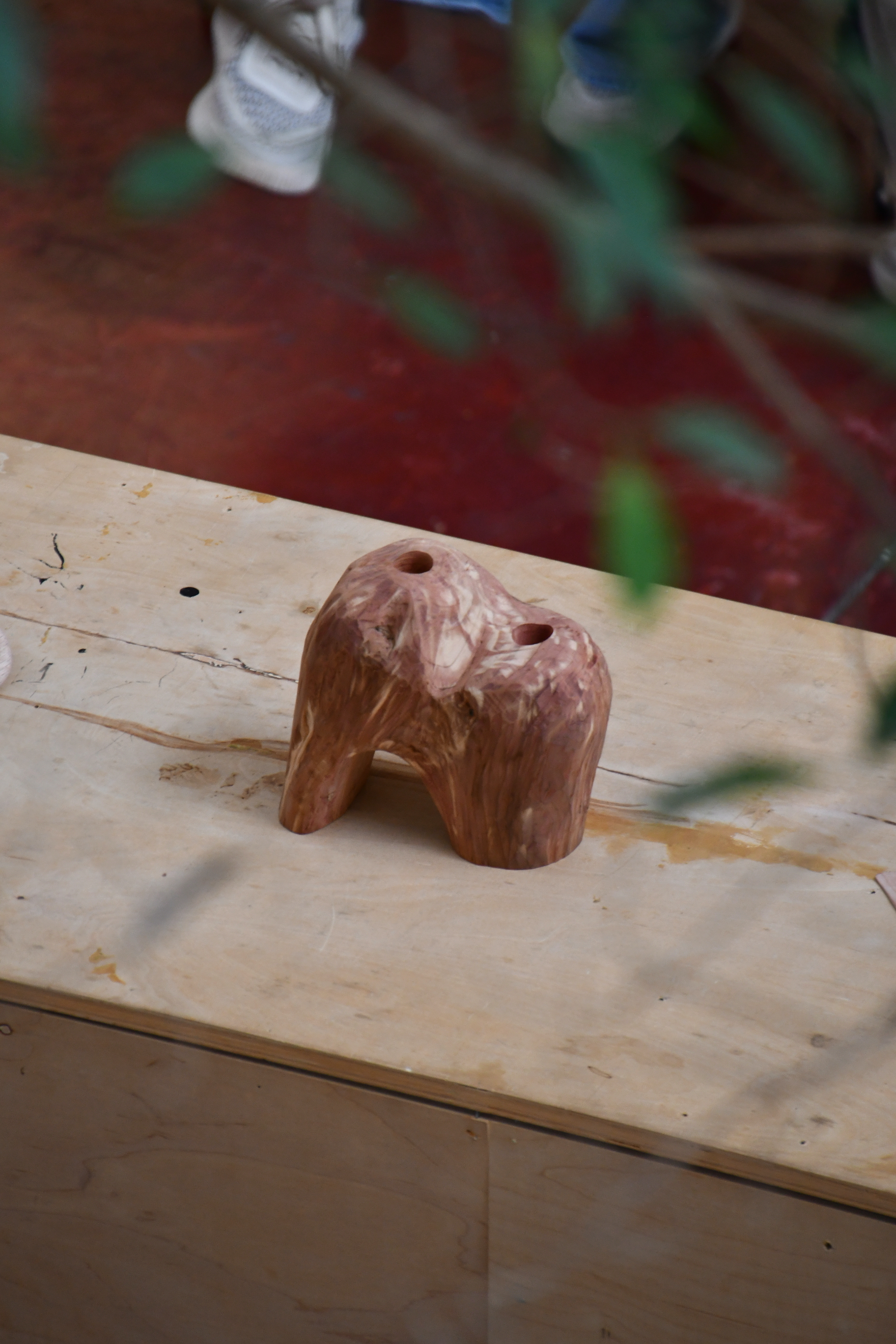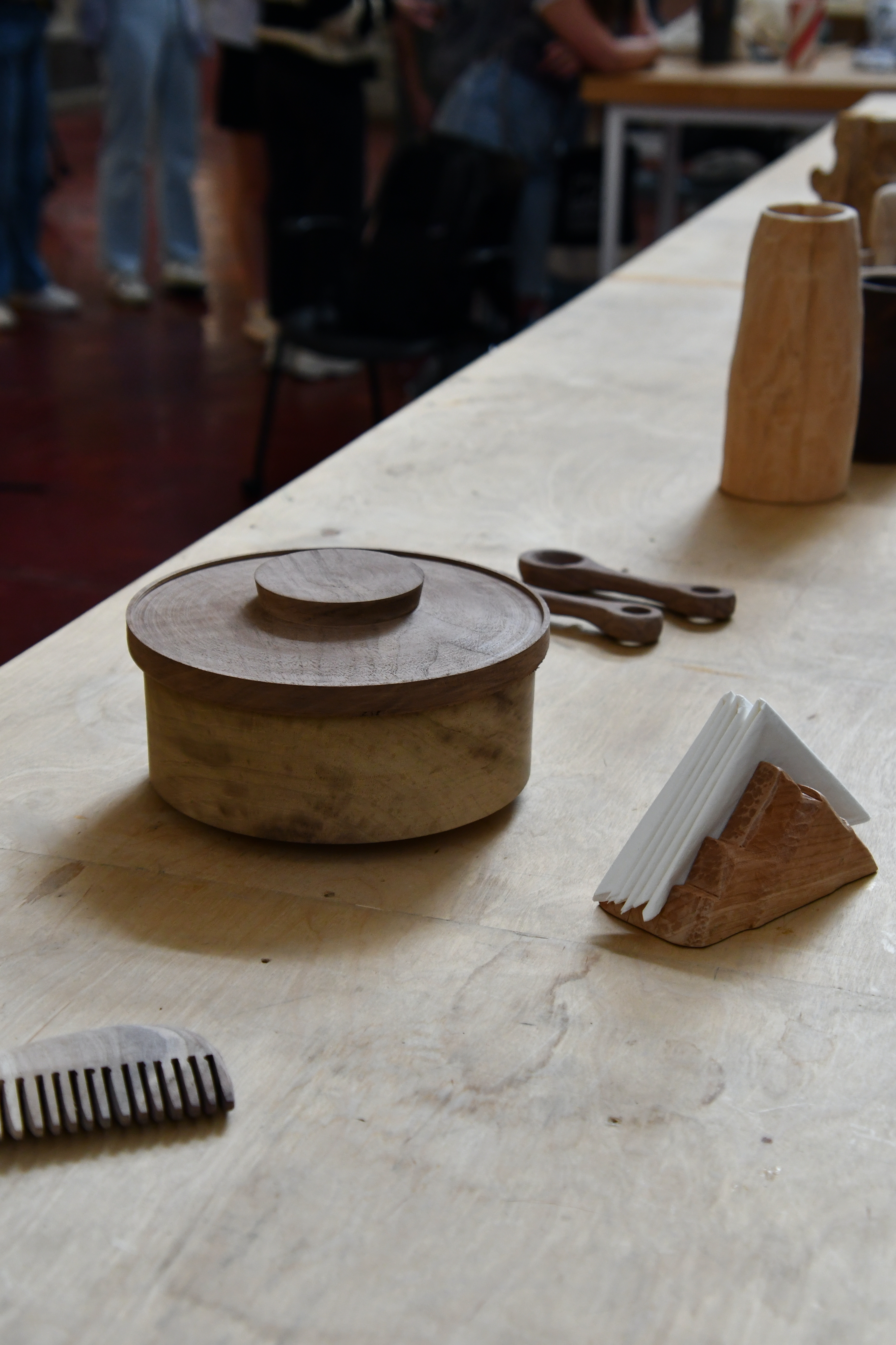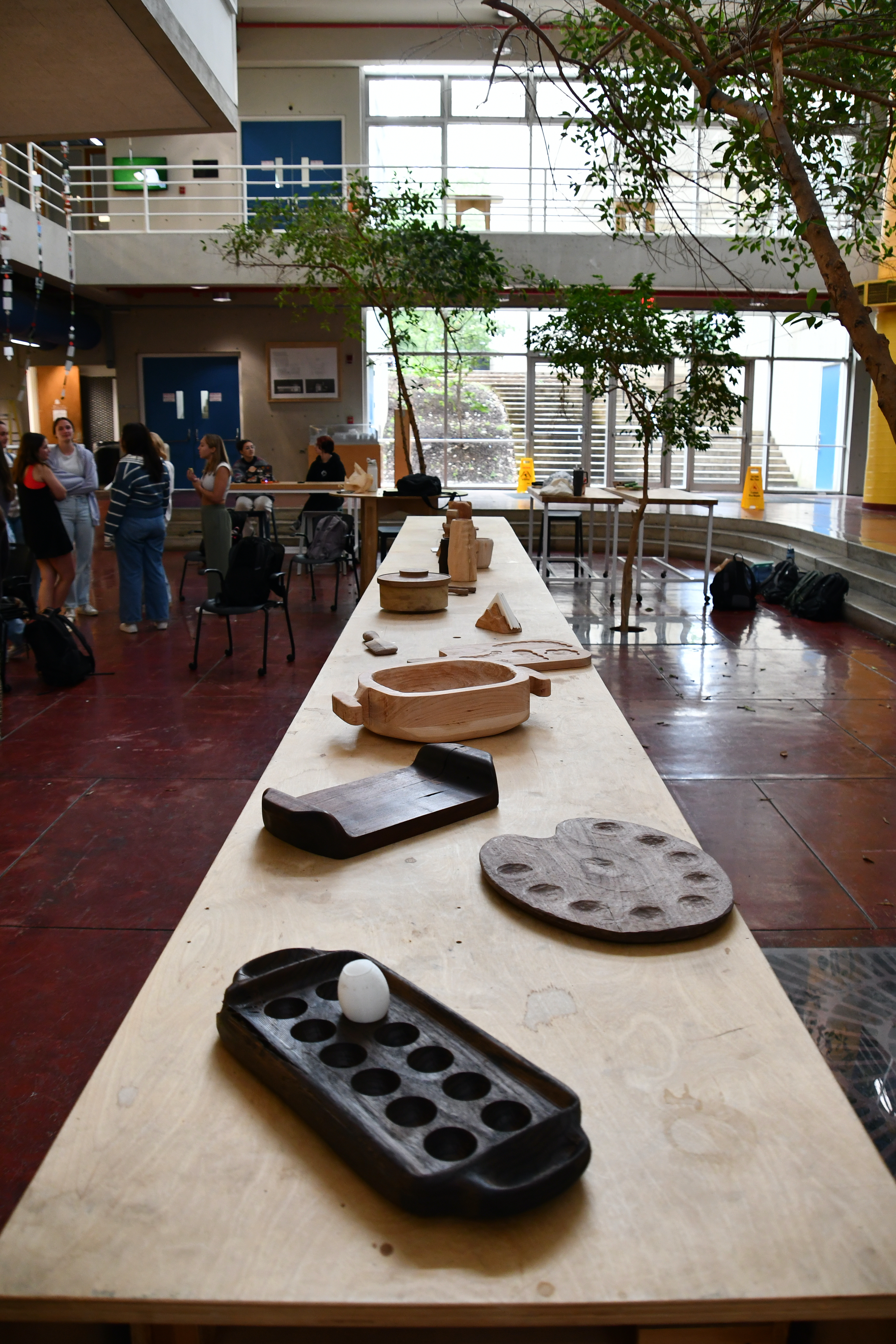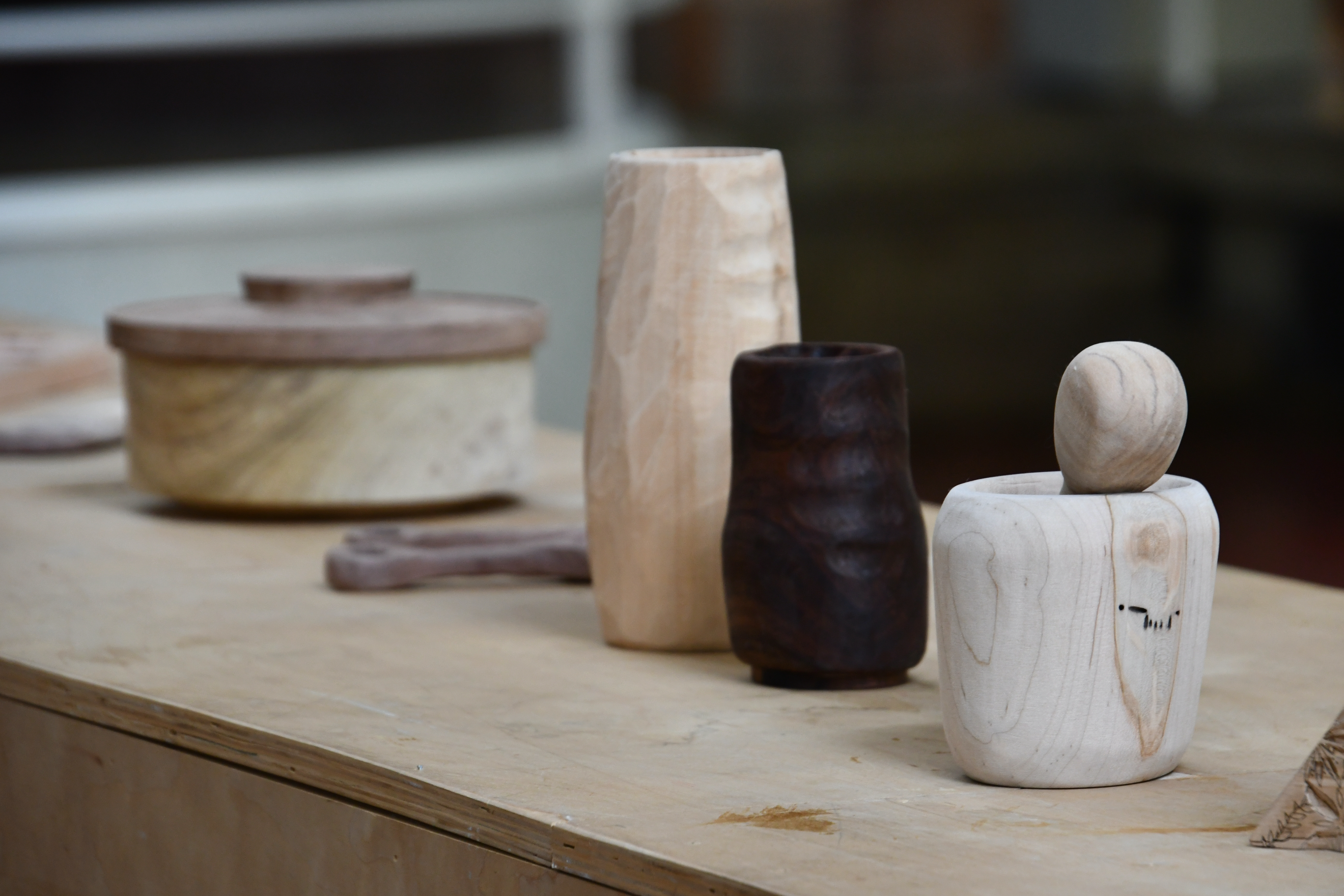 The results of the project were displayed for one day, on a long table in the atrium of the Art and Architecture building. The exhibit attracted a great deal of attention, inspiring other students to explore the college’s comprehensive woodworking resources housed in two facilities; the on-campus woodshop and off-campus Fab Lab.