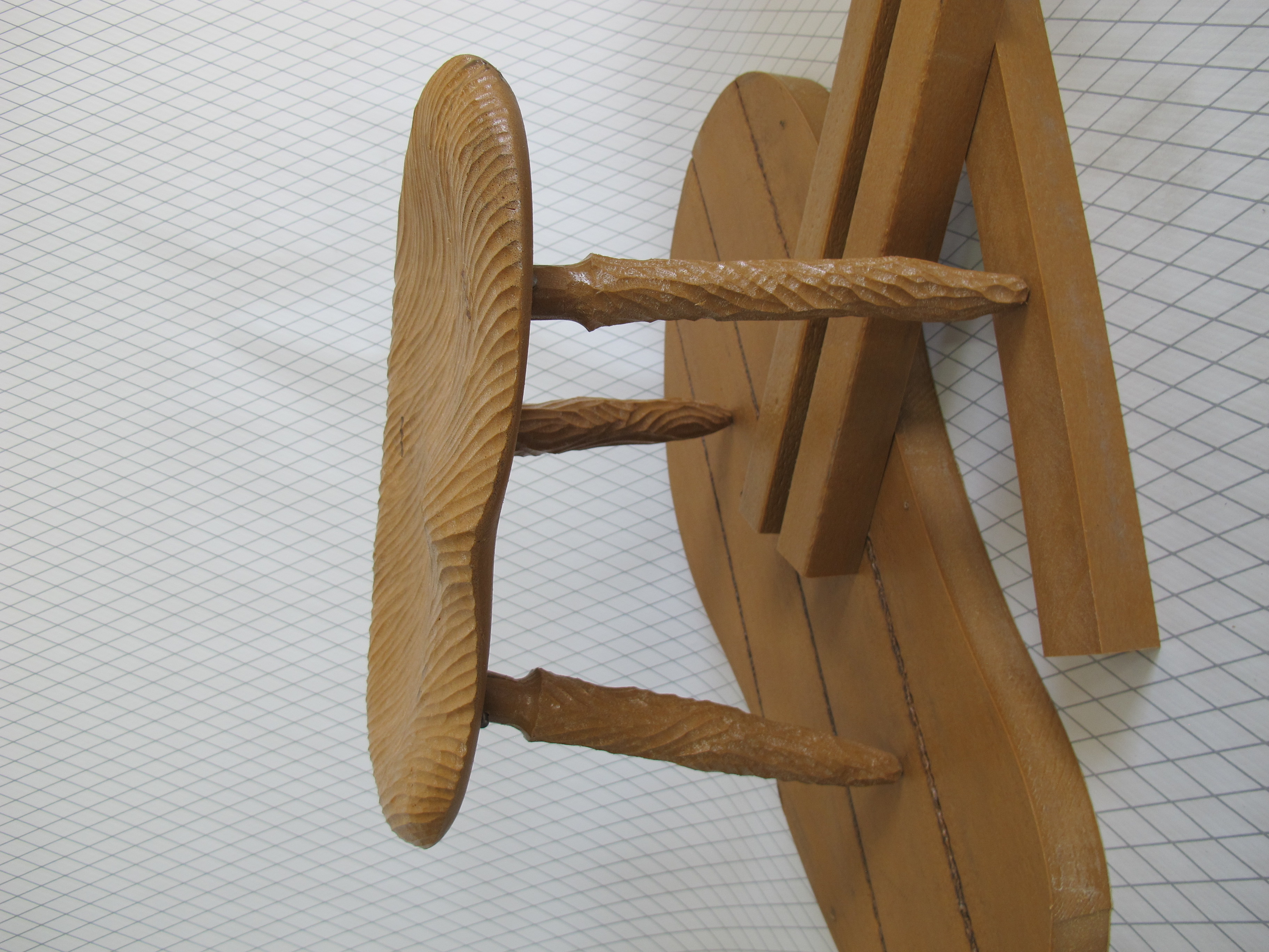 In an attempt to create furniture objects from recycled lumber with a new or different aesthetic, I began experimenting. At the time I was working for artists that had purchased a bicycle rack made from HPDE Lumber. They often used strange commercially available goods in art installations and videos. The rack sat around for years, unused, so I further recycled it, disassembling and further milling the material using various woodworking techniques. Instead of using the material as a standard contractor would, I employed more time-consuming techniques borrowed from the craft of fine furniture-making. I used chisels and gouges to shape the material into legs and a seat. I cut joints such as mortises and tenons, and laminated boards into planks by melting instead of gluing. I made a rustic-inspired stool with the same traditional techniques used for stake furniture.